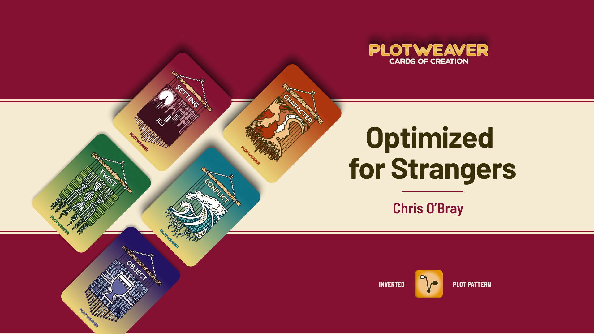 This story uses an Inverted Plot Pattern, written in 15-minute timed acts with all story cards drawn at random. For more information, visit www.plotweavergame.com