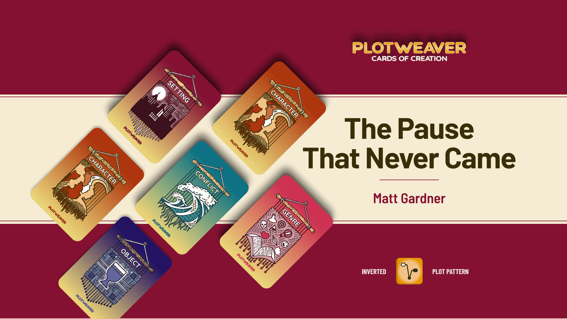 This story uses an Inverted Plot Pattern, written in 15-minute timed acts with all story cards drawn at random. For more information, visit www.plotweavergame.com