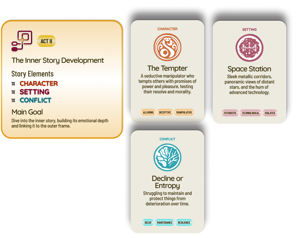 Story Element Cards: The Tempter, Space Station, and Decline or Entropy