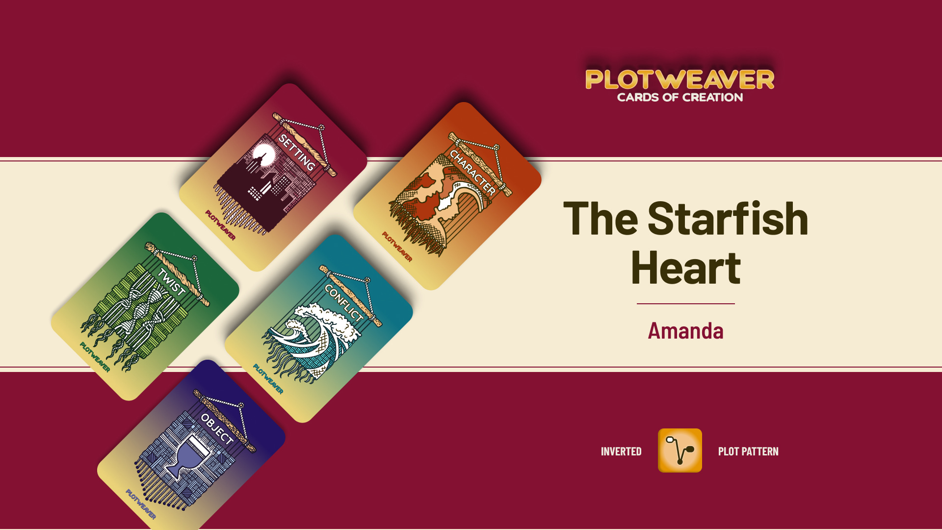 This story uses an Inverted Plot Pattern, written in 15-minute timed acts with all story cards drawn at random. For more information, visit www.plotweavergame.com